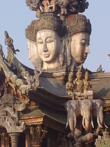 கிழக்கு ஆசியாவின் மதங்களை சங்கமிக்கும் வகையில் உருவாக்கப் பட்டிருக்கிறது இக்கோவில். 1981 ல் ஆரம்பிக்கப்பட்டு வேலைகள் இன்னும் நடந்து கொண்டிருக்கின்றன. இன்னும் 5 லிருந்து 8 வருடம் ஆகும் என்கிறார்கள், இதைக் கட்டை முடிக்க. அஸ்திவாரம் வரைக்கும்தான் இரும்பும் சிமெண்ட்டும். அதன் மேல் எழுப்பப்பட்ட கோவில் முழுவதும் முழுக்க முழுக்க மரத்தினாலேயே செதுக்கப்பட்டுள்ளன. அனைத்தும் தேக்கு மரங்கள். சிற்பங்கள் அருகிலுள்ள தொழிற்கூடத்தில் சிற்பிகளால் செதுக்கப்பட்டு பின்னர் கோவிலில் பொருத்தப்படுகின்ரன. சுமார் 100க்கும் மேற்பட்ட சிற்பிகள் வேலை செய்து வருகிறார்கள். இதற்கு கருத்து வடிவம் கொடுத்து செயல்களை ஆரம்பித்தவர் திரு. குன் லெக் என்கிற கோடீஸ்வரர். சில வருடங்களுக்கு முன் அவர் இயற்கை எய்தினாலும், கோவில் பணிகள் தடையின்றி நடந்து வருகின்றன.